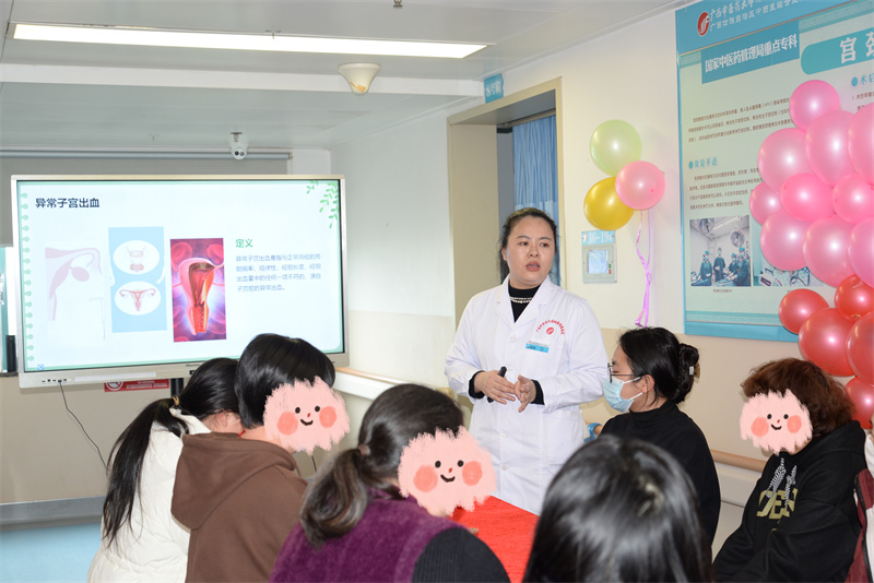活动开始,张胜男以《异常子宫出血》为题,结合临床案例,用通俗易懂的语言向在场患者及家属讲解了异常子宫出血的常见病因、症状表现及危害。她强调"异常子宫出血并非'忍忍就好',可能是子宫肌瘤、内分泌失调甚至恶性肿瘤的信号。"同时,张胜男还针对不同年龄段女性群体,详细介绍了预防措施和生活调理建议,包括饮食调节、规律作息、心理减压等。听众们表现出高度的专注与参与热情,现场气氛温馨融洽。