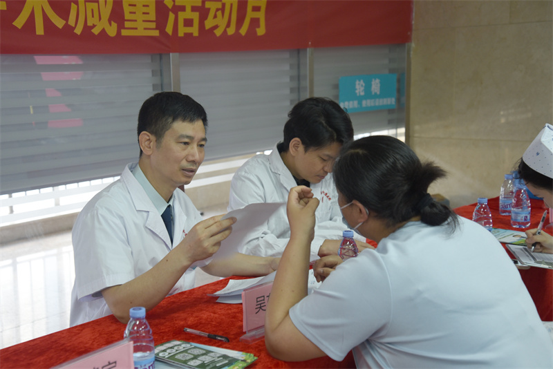 随后,唐红珍宣布活动正式开始。病友们来到A座三楼诊区参加活动。本次活动为病友们免费测算体质指数(BMI) 、三围、血压,免费测血糖,并提供肥胖及相关合并症防治的宣传资料,为他们答疑解惑。活动期间,报名后到医院体检确诊为“肥胖症合并代谢综合征”并自愿在我院住院接受微创减重代谢手术、确有需要减免优惠的病友,将有机会享受住院手术费用不同程度的减免优惠政策。