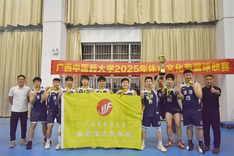 5月6日至19日,广西中医药大学2025年体育文化节校园篮球联赛在广西中医药大学仙葫校区火热开赛。瑞康临床医学院积极响应赛事号召,组建男女篮代表队全力出征。赛场上,男篮队员以锐不可当之势突破重围,凭借精湛球技与拼搏精神一路过关斩将,最终荣获冠军。