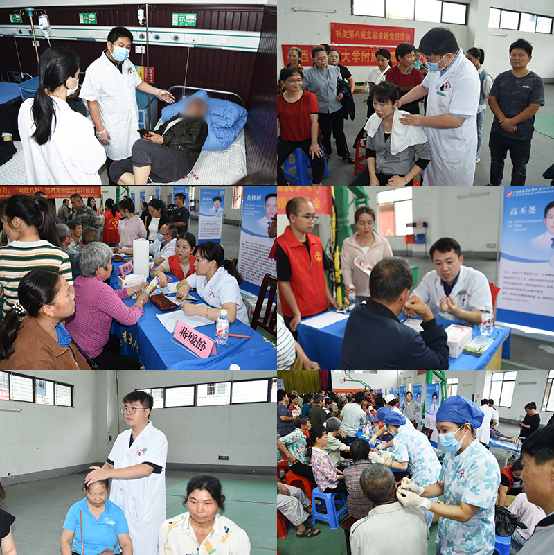义诊现场,人头攒动。专家们耐心细致地为前来就诊的群众讲解各种常见病、多发病的预防知识。针对群众的情况,医护人员进行了一对一的解答,为不同病症的群众提出了具体的保健指导和治疗建议。同时,现场特别设置了中医特色治疗体验区,火龙罐、杵针、耳穴压豆、推拿手法等特色中医外治疗法吸引众多群众驻足体验。放疗科主任吴发胜和正骨推拿理疗科主治医师陈嘉瑜还走进高岭镇卫生院,与基层医生围绕疑难病例展开深入研讨,并给予合理的治疗建议与指导。