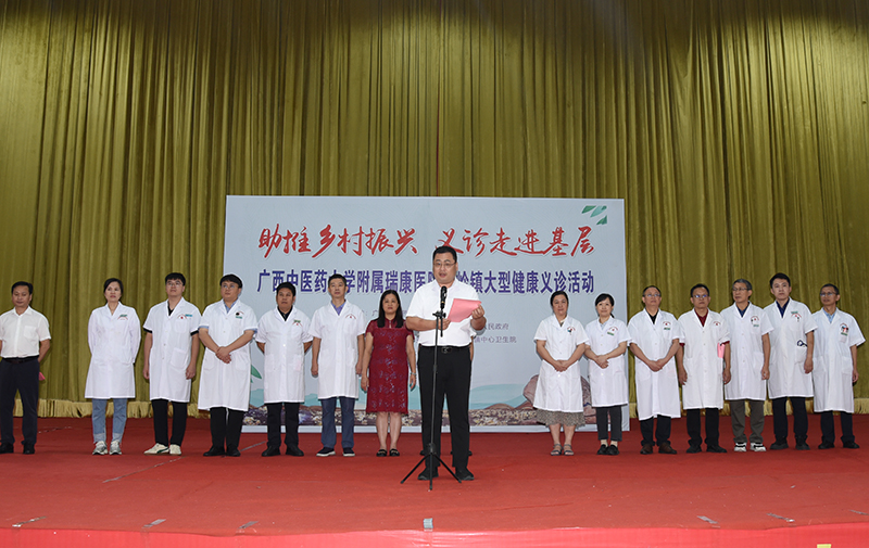 5月30日,我院副院长李铭带领医护团队来到都安县高岭镇,联合镇党委政府和中心卫生院在高岭镇文化中心广场及中心卫生院开展以“助推乡村振兴 义诊走进基层”为主题的大型健康义诊及查房教学活动。高岭镇党委书记李举国主持活动启动仪式。