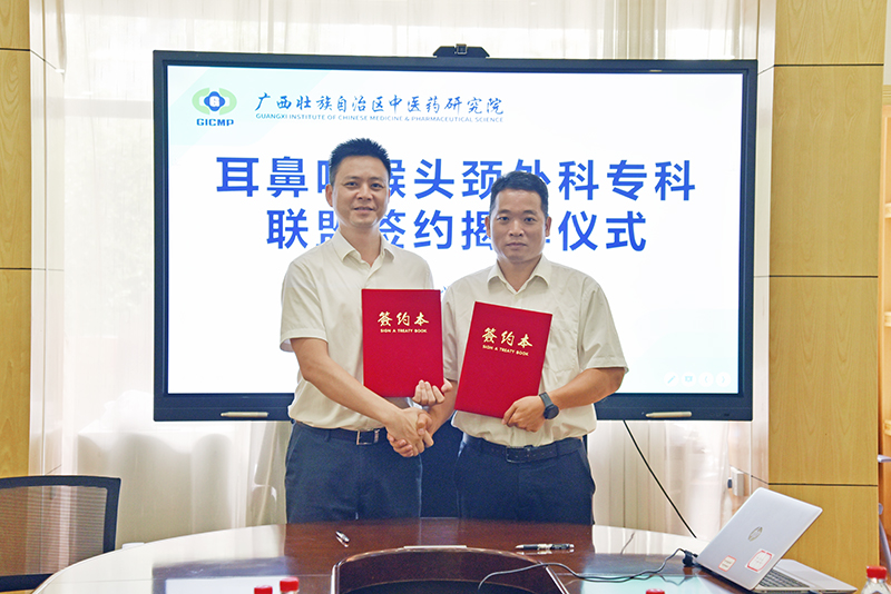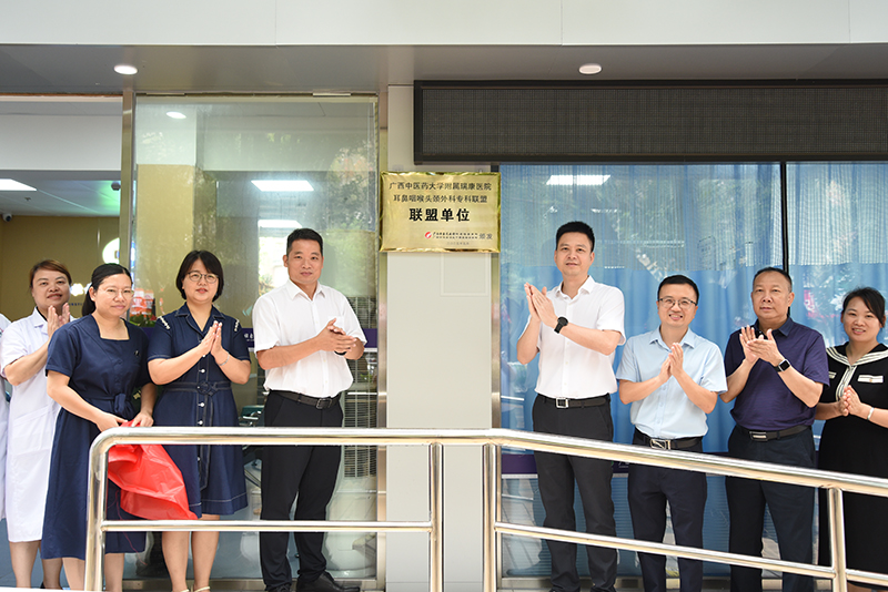 为推动优质医疗资源下沉,提升区域耳鼻咽喉头颈外科诊疗水平,6月18日上午,我院与广西中医药研究院举行耳鼻咽喉头颈外科专科联盟签约暨揭牌仪式。我院副院长韩杰率领耳鼻咽喉头颈外科、医疗外联部相关负责人赴广西中医药研究院,与该院党委书记、院长赖克道,副院长梁冰及相关部门负责人共同见证这一重要时刻。