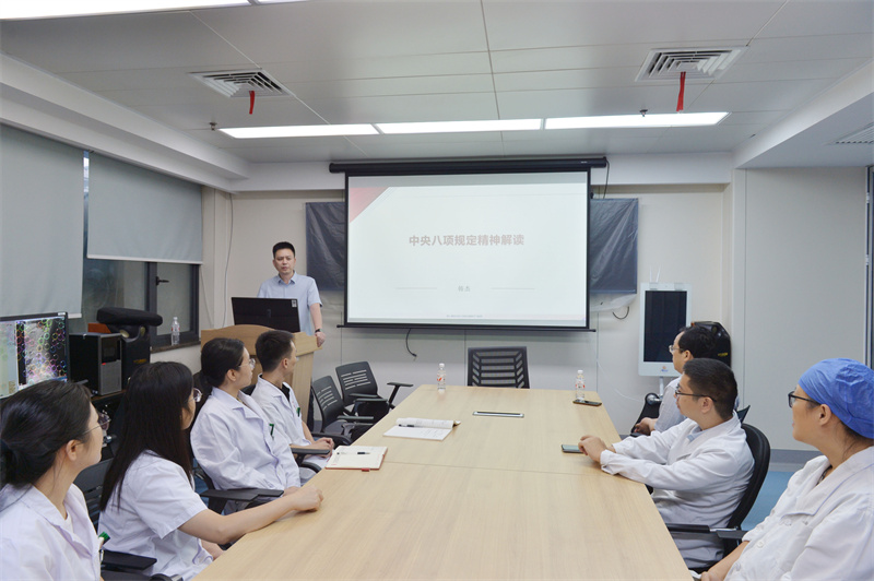 院领导强调,开展深入贯彻中央八项规定精神学习教育,是巩固深化主题教育和党纪学习教育成果、纵深推进全面从严治党的重要举措,是密切党群干群关系、巩固党的执政基础的必然要求,必须常抓不懈、久久为功。全院党员干部要切实把贯彻中央八项规定精神的成效转化为锤炼党性、改进作风的高度自觉,转化为做好本职工作、推动医院事业高质量发展的生动实践。