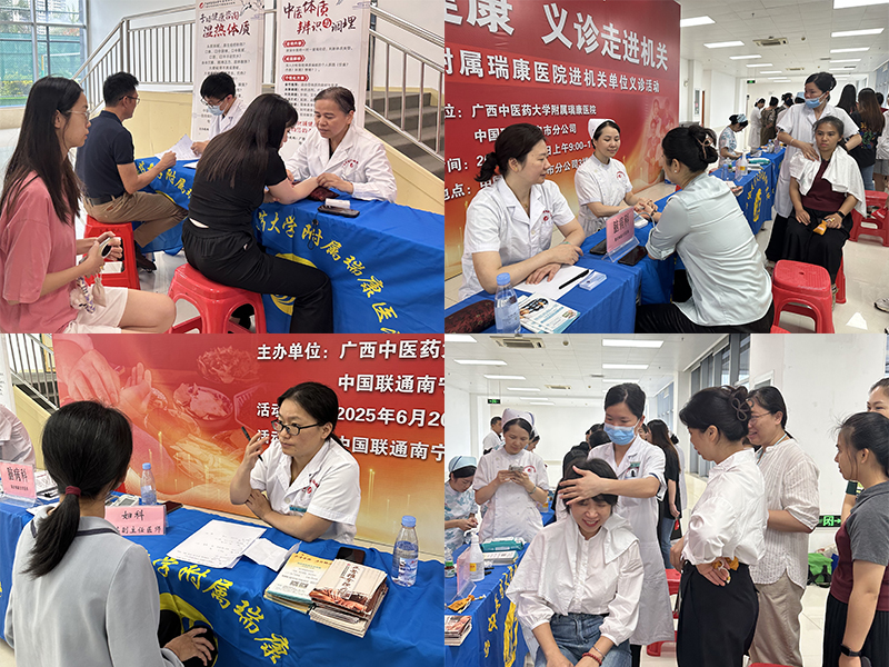 为弘扬中医药文化,提升企业职工健康素养,6月20日,我院医疗外联部组织脑病科、肛肠科、治未病中心、正骨推拿理疗科等多学科专家团队,走进中国联通南宁市分公司开展 “中医药文化进机关” 义诊活动,以中医特色诊疗服务为职工送上健康关怀。