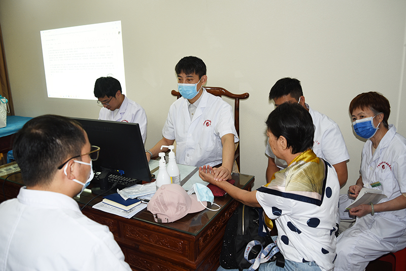 24日下午,许家栋教授深入中医经典病房参与疑难病例会诊。他仔细聆听主管医生病情汇报,为患者进行系统检查,从中医“病因病机、辨证论治、转归预后”等多个维度,与跟诊医务人员展开深度研讨。交流中,他针对临床困惑逐一解答,毫无保留地分享数十年临证用方心得与辨治思路,其“方证对应”的诊疗逻辑与灵活化裁的组方技巧,让在场医护人员深受启发。