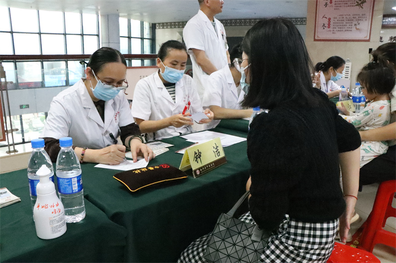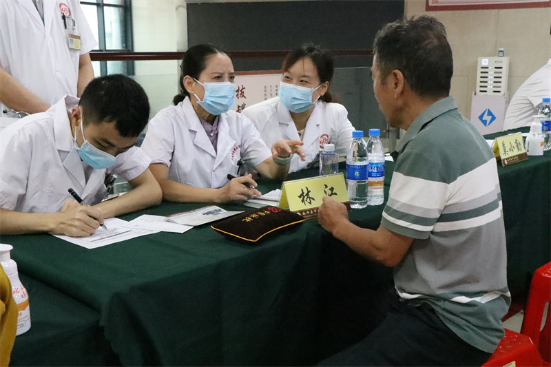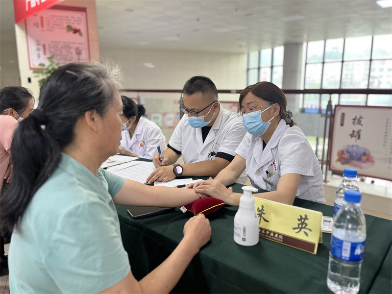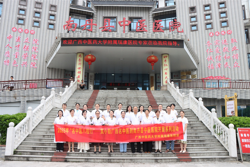 为了进一步开展广西“名中医八桂行”活动,将名中医学术思想和临证经验带入基层医院,促进中医药学术传承和技术推广,提升基层医院中医药服务质量和能力,服务群众,6月25-26日,全国老中医药专家学术经验继承工作指导老师、广西名中医、中医妇科专家林江教授,广西名中医、乳腺病科专家莫小勤教授,广西名中医、针灸科专家朱英教授,广西名中医、中医妇科专家钟洁教授,泌尿外科专家罗向东副主任医师,中医妇科专家黄秋副主任医师等7人来到南丹县中医医院开展广西“名中医八桂行”系列活动。本次活动通过专家授课、惠民义诊、教学查房等形式,将优质中医药服务送到基层,切实为人民群众提供了便利。
