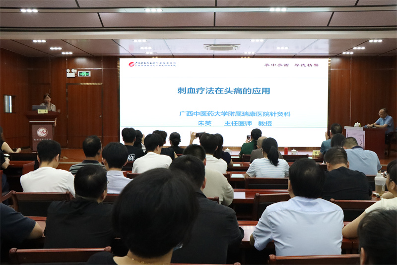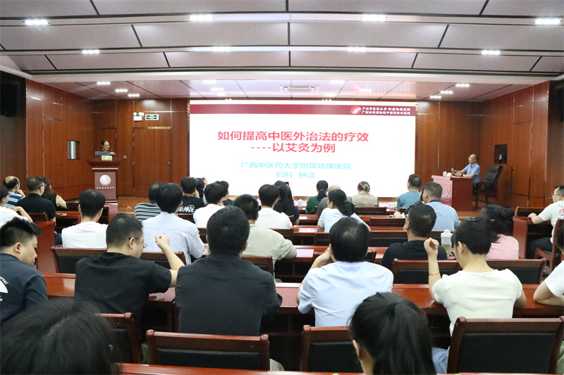 25日下午,专家团队为南丹县中医医院医护人员开展学术讲座,朱英教授围绕《刺血疗法在头痛的临床应用》,详细讲解了刺血疗法在治疗头痛的辨证取穴原则及操作手法;钟洁教授以《如何提高中医外治法的疗效——以艾灸为例》为题,分享提高外治疗效、赢得患者信赖的秘诀;罗向东副教授讲解《浅谈体外冲击波碎石与物理振动排石治疗的临床应用》,为基层医院在碎石治疗的临床应用方面带来新思路;黄秋副教授分享了《广西名中医林江工作室治疗睡眠障碍临证经验》,将工作室治疗睡眠障碍的临床经验毫无保留的分享给临床一线医务人员。授课内容丰富生动,条理分明,在场的医护人员纷纷表示受益匪浅,为他们今后的工作提供了宝贵的经验和启示。