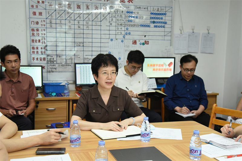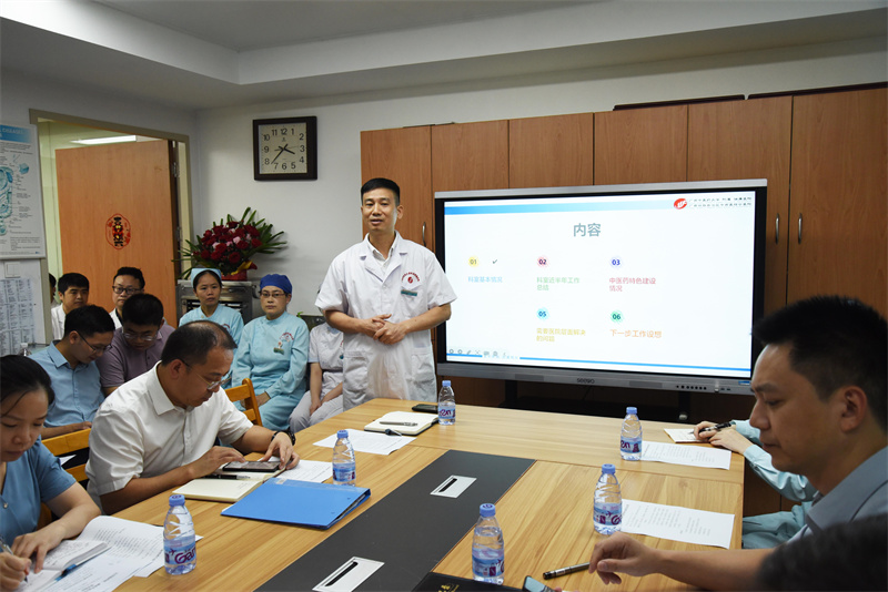 查房会上,胃肠外科、减重代谢外科主任吴东波围绕科室基本情况、科室近半年工作总结、中医药特色建设情况等方面进行了详细汇报,并提出了下一步工作思路与亟需解决的问题。随后,各行政职能科室负责人依次发言,就查房中发现的问题和亮点与科室进行了深入交流,并提出可行性建议。