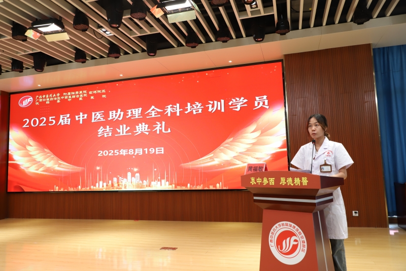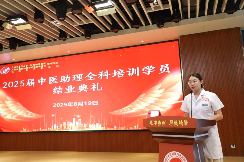 教师代表韦银芳以师者的热忱与牵挂,回顾了学员们在培训中的成长点滴,叮嘱大家不忘从医初心,在实践中精进医术、厚植仁心。助培医师代表黄福敏则分享了培训期间的收获与感悟,言语间满是对医院培养的感恩,以及对未来行医之路的坚定与憧憬。