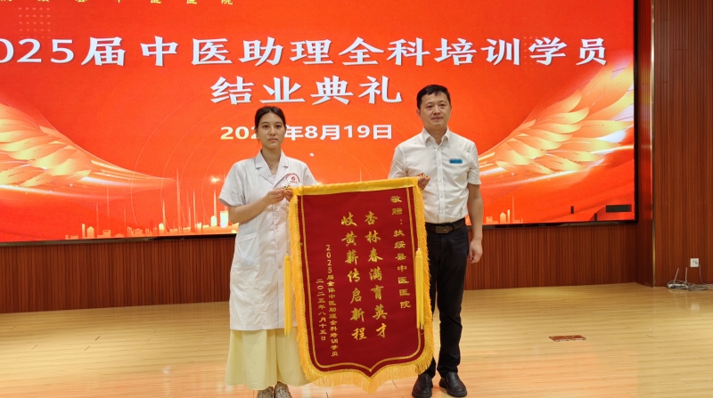 在热烈的掌声中,分院领导向优秀学员授予荣誉证书,这份认可既是对过去努力的嘉奖,更是对未来担当的激励。分院还为全体助培医师送上精心准备的纪念品,小小的物件承载着“娘家”的温暖与牵挂。助培医师代表向医院赠送的锦旗,红底金字间,是学员们对院区悉心培养的真挚回馈。