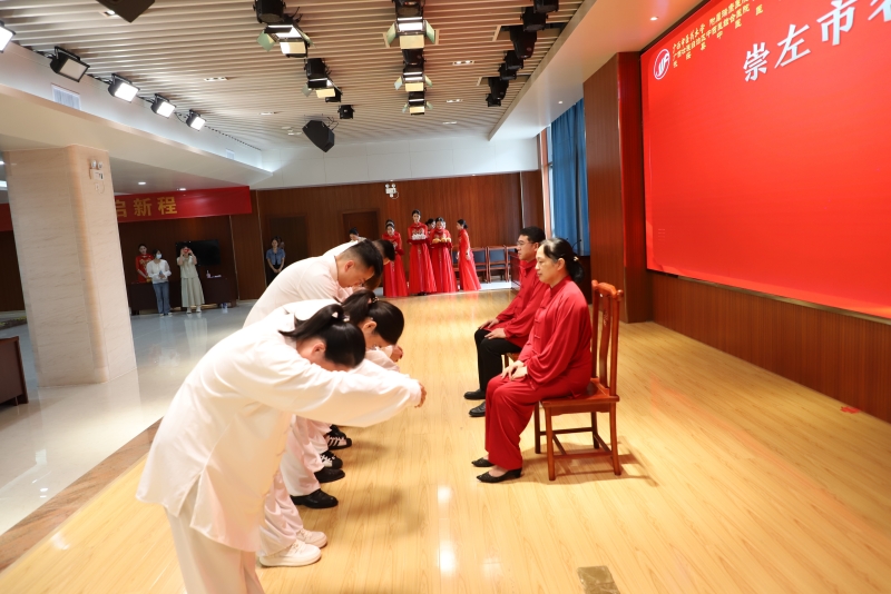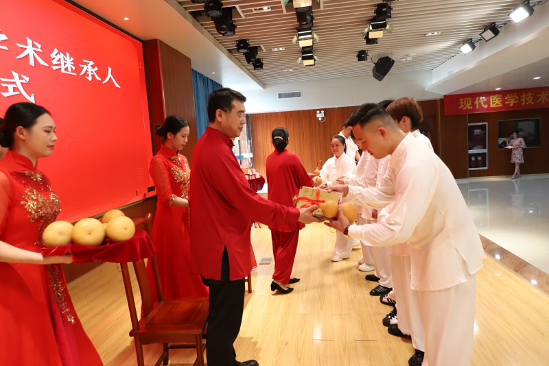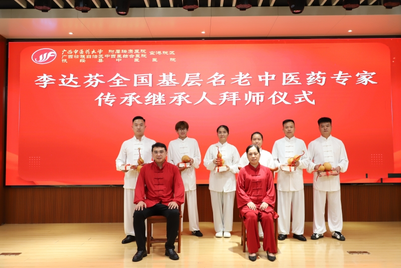 为更好地培养中医药人才、促进老中医学术思想的传承,8月19日下午,空港分院在一楼示教室举行了李达芬全国基层名老中医药专家传承继承人、崇左名中医继承人拜师仪式和中医助培学员拜师仪式。弟子们分别向各自的师傅三鞠躬、敬茶,师傅则赠送弟子葫芦,拜师礼成。