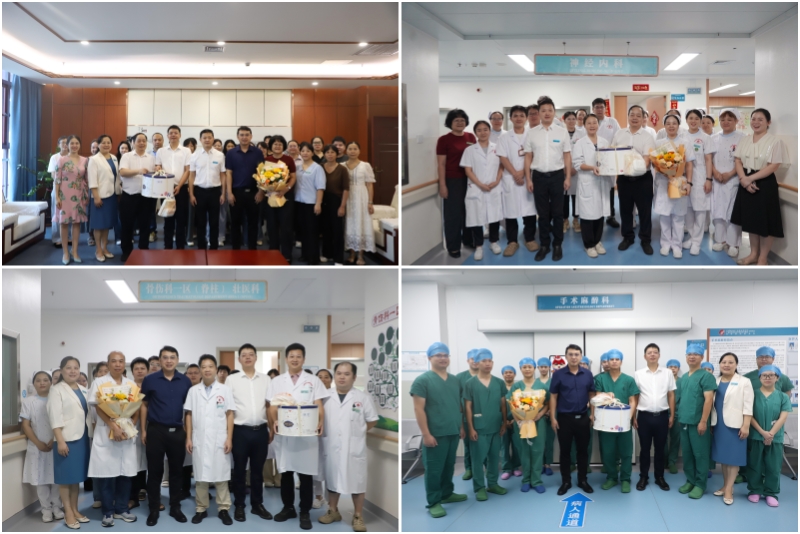 鲜花送祝福,蛋糕表心意。8月19日上午,扶绥县人民政府分管领导到分院开展“中国医师节”慰问活动,分院党总支书记曹步清、执行院长周永喜、副院长滕居赞、蒋娟、周杰彬带领党政办、医务科等职能科室负责人陪同。他们把饱含着关爱的蛋糕及鲜花送到了一线辛勤工作医务人员手中,向院区医务人员表达了节日的问候和崇高的敬意。