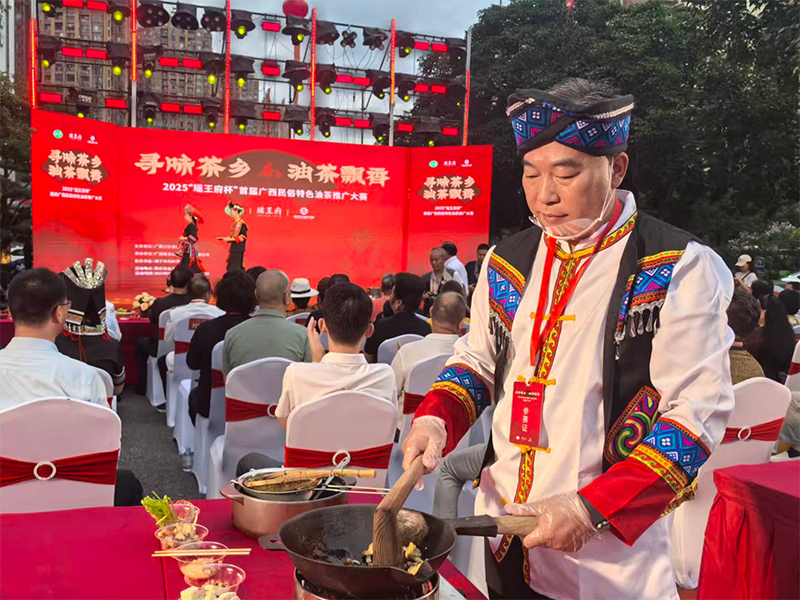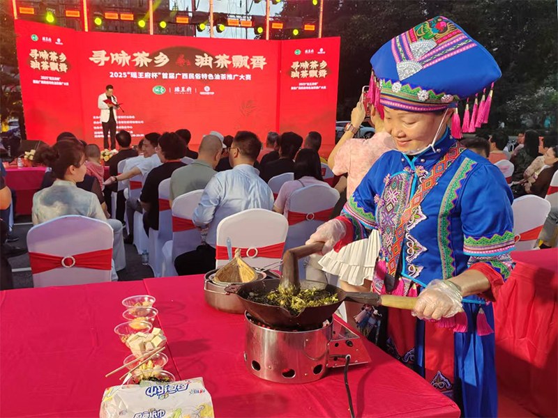 金秋八月,茶香满溢。8月30日晚,首届广西民俗特色油茶推广大赛在广西南宁凤岭商业中心举办。本次大赛由广西烹饪餐饮行业协会主办,以“中国咖啡 八桂飘香”为主题,旨在搭建“传承经典、鼓励创新、交流互鉴、推动发展”的平台。我院派出药膳研发中心黎明、李丽华两位同志携作品“生津爽神汤”参加比赛,最终斩获油茶项目特金奖。