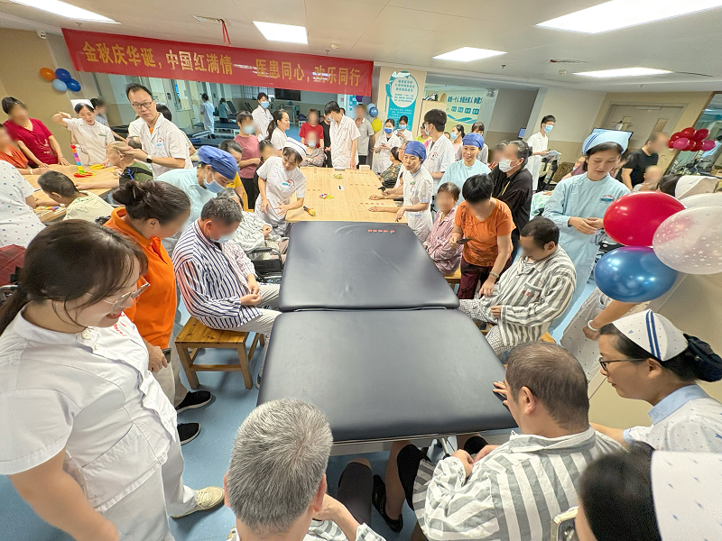 金秋送爽,丹桂飘香。近日,恰逢国庆与中秋“双节”来临之际,我院康复医学科在B座8楼康复大厅精心举办了一场以“金秋庆华诞,中国红满情,医患同心,欢乐同行”为主题的温馨活动。活动现场,病区患者、家属及医护人员代表百余人欢聚一堂,他们用歌声、笑声,还有亲手制作的国旗与灯笼,共同祝愿祖国繁荣昌盛,期盼家庭幸福团圆。科室副主任金欣、王清碧出席活动并致辞,护士长周晓燕主持活动。活动由李江兰副护士长、林日英护士精心策划。