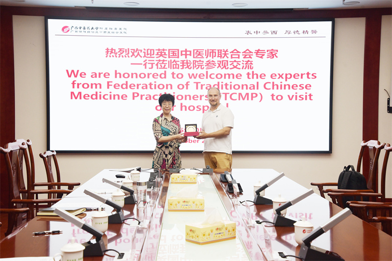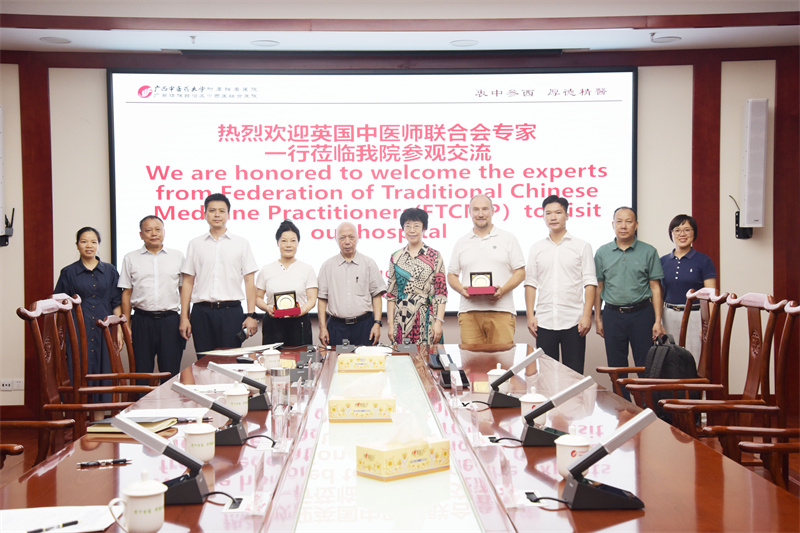 10月9日下午,英国中医师联合会(FTCMP)专家团奥列格、韦联娇、陆夏青一行三人到我院参观交流。国医大师韦贵康、我院院长唐红珍、副院长韩杰热情接待并座谈。