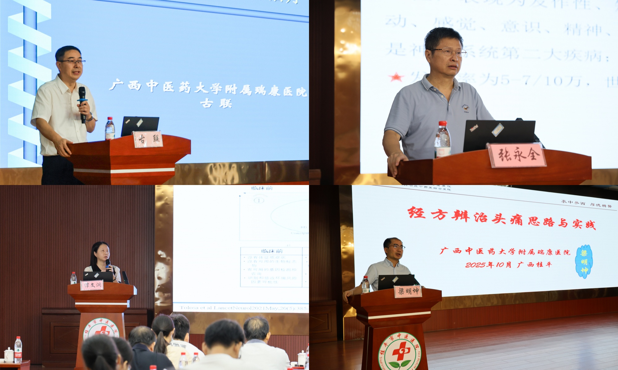 18日上午,专家义诊和学术讲座同时开展。学术讲座上,桂平市卫健局局长李衍、桂平市中医医院副院长莫汉鹏先后致辞,对我院专家团队的到来表示热烈欢迎,并期待未来能常态化开展此类交流活动。随后,古联、张永全、梁明坤、谭文澜等专家分别以《头痛的诊治新进展》《癫痫中西医治疗进展》《经方辫治头痛思路与实践》《帕金森病全程管理新进展》为题作了精彩授课。讲座内容兼具实用性的和专业性,系统地介绍了前沿知识及中医实用技术,有效帮助参会者拓宽专业视野、强化临床思维能力。