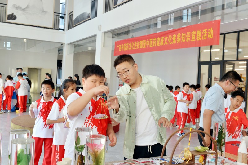 10月27日下午,南宁市良庆区六里路小学的校园里飘起阵阵药香,我院 "识百草 知中药" 中医药文化进校园活动在此温馨启幕。活动紧扣小学生认知规律,以 "科普+体验" 为核心形式,让孩子们近距离接触中草药、感知中医药魅力,在实践中传承中华优秀传统文化,涵养科学探索精神,让中医药文化在校园落地生根。