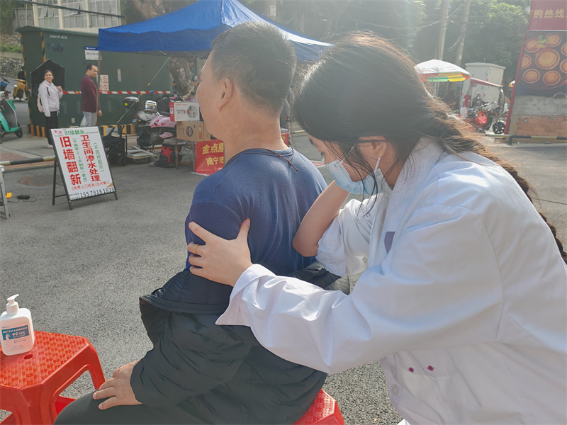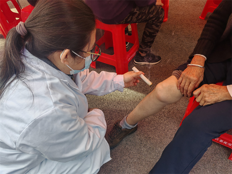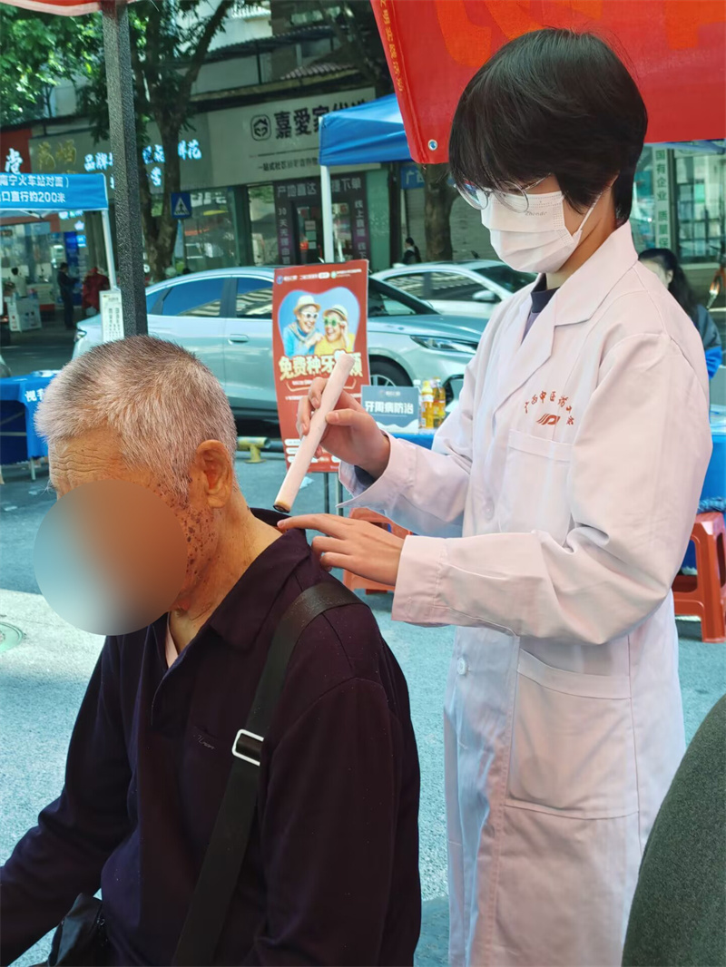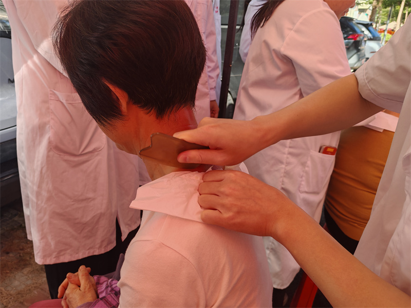 活动现场暖意融融、人气高涨,闻讯而来的居民有序排队体验各项中医特色服务,沉浸式感受传统医学的独特魅力。在血压测量区,志愿者们为居民监测血压,结合数值情况提供个性化饮食、运动等健康指导,耐心解答高血压防治相关疑问;手法按摩区前,志愿者运用专业推拿技法,精准针对居民肩颈腰背酸痛等常见问题进行舒缓调理,娴熟的技艺赢得阵阵称赞;艾灸区域内艾香袅袅,志愿者一边操作一边细致讲解艾灸养生原理、适用病症及注意事项,让居民深入了解中医养生知识;刮痧服务台前同样人头攒动,不少居民体验后直呼 “肩颈轻松多了”,对中医疗效给予高度认可,现场好评如潮。