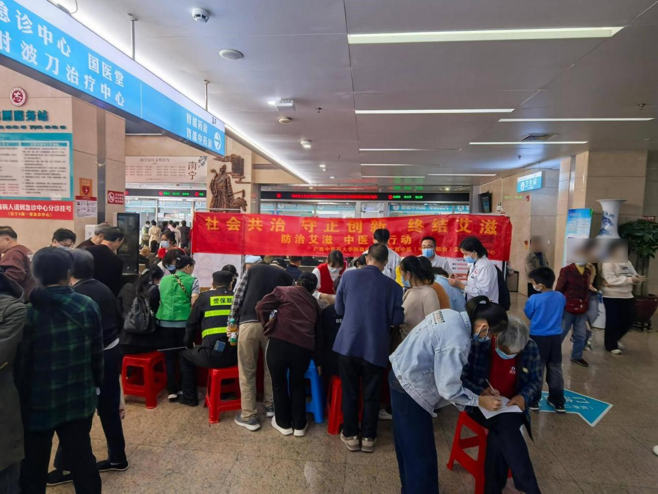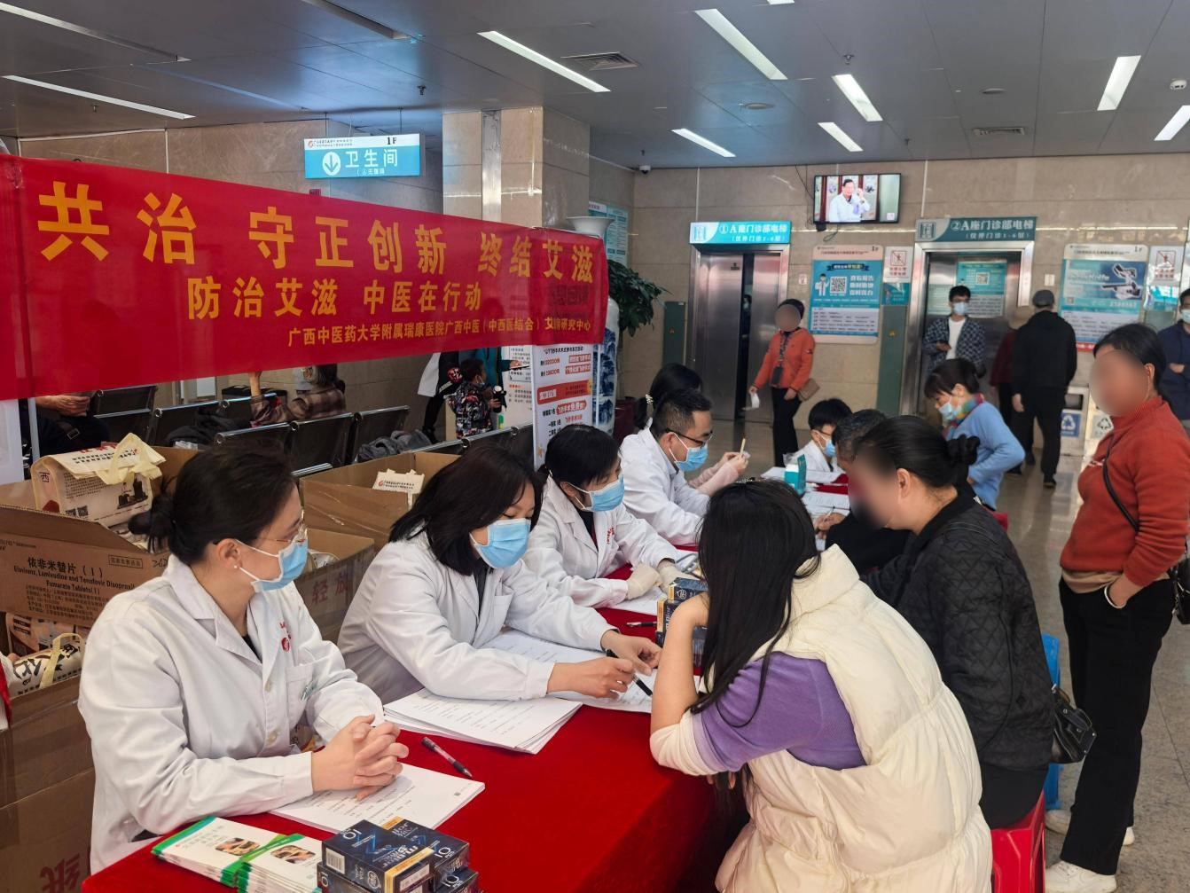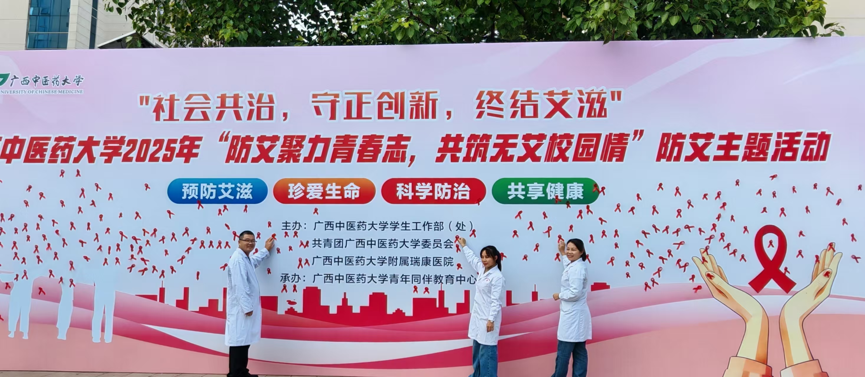 当日下午,我院将防艾阵地前移至广西中医药大学校园,面向大学生这一重点人群开展了针对性的宣传教育活动。校园活动现场人流如织,约500名大学生积极参与。志愿者们向过往师生分发防艾宣传资料和防护用品,现场设置了“防艾聚力青春志,共筑无艾校园情”签名墙,同学们纷纷签名表达对抗艾事业的支持,承诺做自己健康的第一责任人。