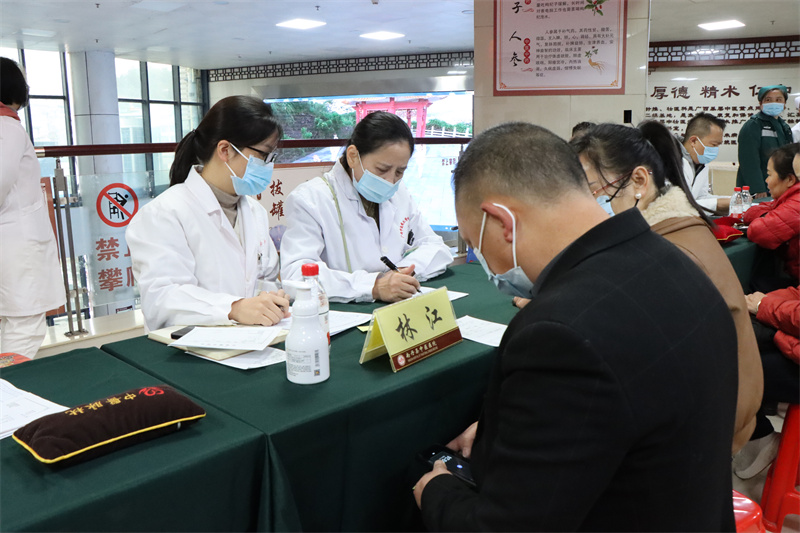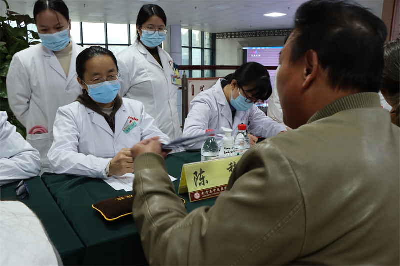 12月4日上午,专家团队在南丹县中医医院门诊楼前进行惠民义诊活动。慕名而来的群众络绎不绝,专家们耐心细致地为每位群众答疑解惑,通过望、闻、问、切等中医传统诊法,提供个性化治疗方案与健康指导。同时,积极普及医学常识与中医保健知识,帮助群众增强疾病防治意识和自我保健能力。专家们严谨的态度、耐心的解答与专业的诊疗,获得了群众的一致好评。此次活动将优质中医药服务送到百姓“家门口”,切实缓解群众“看病难”问题,义诊现场气氛热烈,深受当地居民欢迎。