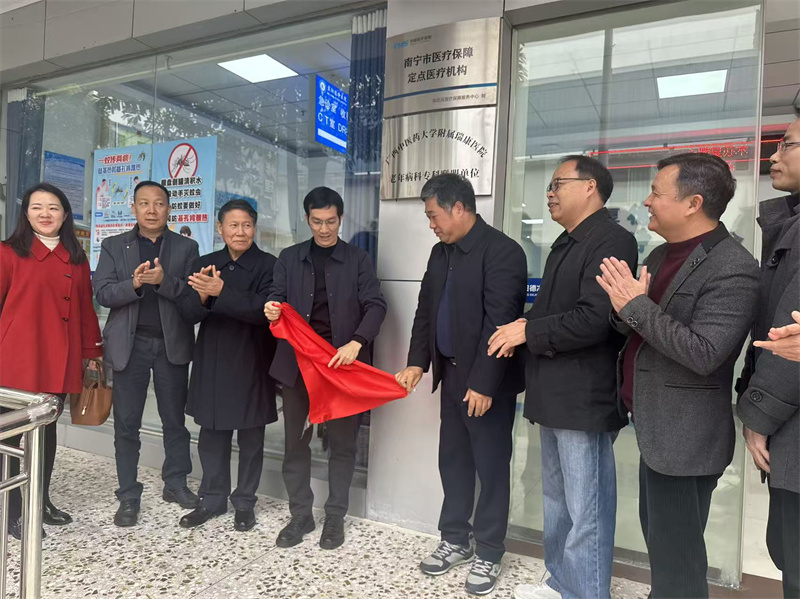 仪式现场,两院相关人员共同为“广西中医药大学附属瑞康医院老年病专科联盟单位”揭牌。