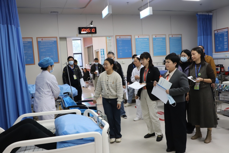 汇报结束后,专家组严格依据评价标准,现场查阅了空港分院卒中中心的规章制度、流程规范、质量控制及运行数据等资料,并实地走访了空港分院急诊科、脑病科(神经内科)等科室。专家组查看了绿色通道设置,随机考核医护人员,并对卒中中心的运作体系、指引标识、模拟演练、流程制度执行情况、技术细节等环节进行了全面、细致的现场考察、指导与评价。