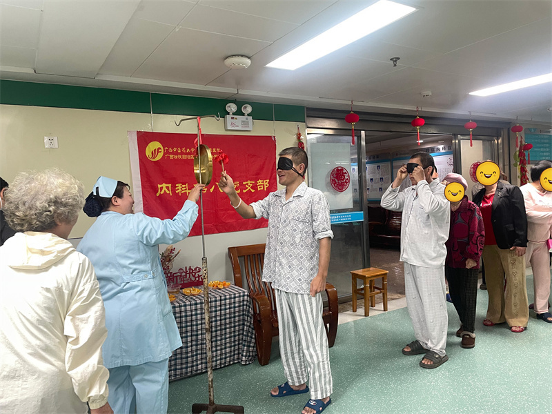 健康宣教结束后,趣味套圈游戏活跃了现场气氛。患者与家属踊跃参与、互动频频,欢声笑语充满整个病房,大家在轻松愉悦的游戏中放松身心、增进交流,感受节日的欢乐与活力。活动尾声,医护人员将一碗碗热气腾腾的汤圆送到患者手中。软糯香甜的汤圆象征团圆美满,鲜香可口的饺子承载浓浓关怀,让无法回家团聚的患者在病房中感受到家一般的温暖与陪伴。