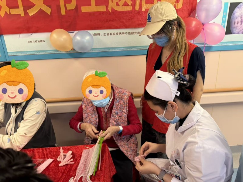 最后的环节是“‘扭’出繁花”手工体验活动,在医护人员和志愿者的耐心帮助下,患者们都兴致勃勃地动手制作专属的扭扭棒花束。五彩的扭扭棒在指尖缠绕、绽放,成为一束束永不凋谢的“鲜花”。这份亲手制作的礼物,不仅带来了创造的快乐,更寓意着健康与美丽长存,为节日增添了浓浓的温情与成就感。