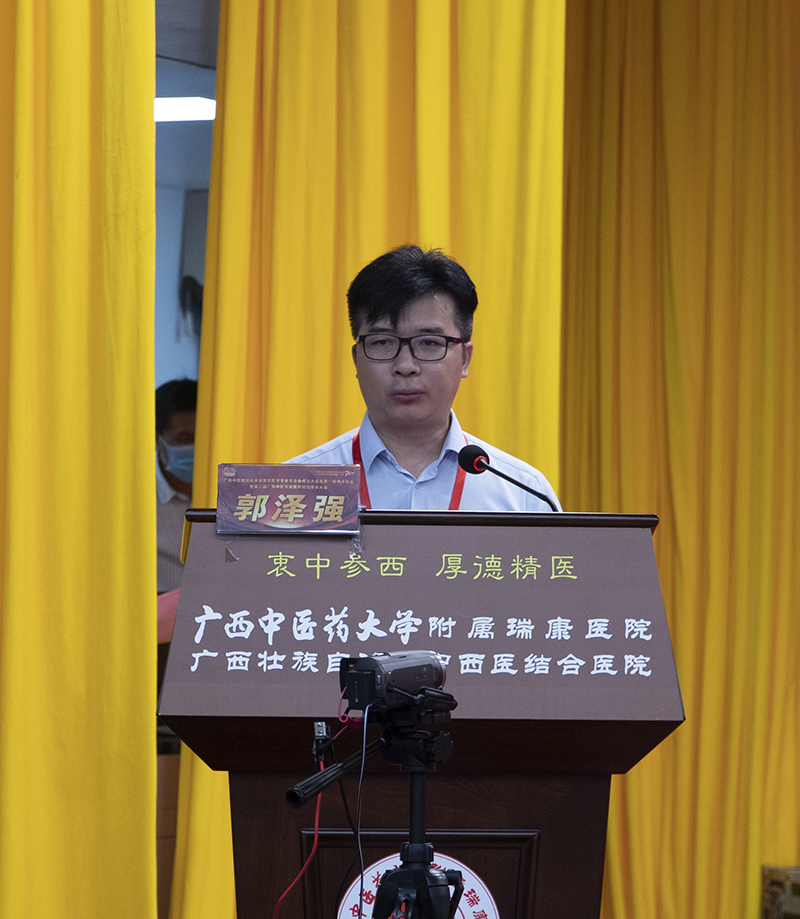 郭泽强在致辞代表南宁急救医疗中心及广西院前医疗急救质控中心对广西中西医结合学会重症医学专业委员会的成立表示祝贺。他指出中医药在此次抗击新冠肺炎疫情过程全程参与,有效阻断了疫情扩展和蔓延,采取中西医结合救治对于急重症患者的救治起到了极其重要作用和疗效,中医药和中西医结合在抗击疫情过程的巨大贡献和成就,引起国际社会高度重视,中医药的地位、中医药的疗效进一步得到彰显。中西医结合意味着包容与开放,传承与创新,重症医学专业委员会汇集了业内各领域专家,可以针对不同疾病特点在此平台讨论讨论学科贡献问题,拓展中西医结合新思路,集中力量开展技术大攻关,通过学科的交叉与融合共同推进重症医学学科的发展。南宁急救中心将和重症医学专业委员会共同努力,按照急危重症患者上车即入院的理念共同探索中西医结合的急救在院前急救的重要作用,更好保障人民群众的生命健康。