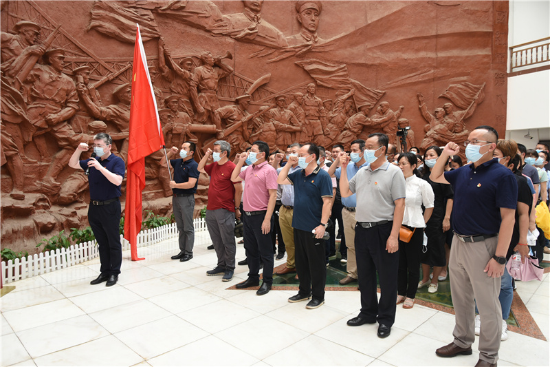 6月18日下午,我院党史学习教育现场教学学员一行来到龙州起义纪念馆,在纪念馆广场的邓小平雕像前举行“感恩党 跟党走”党史学习教育培训班开班仪式。