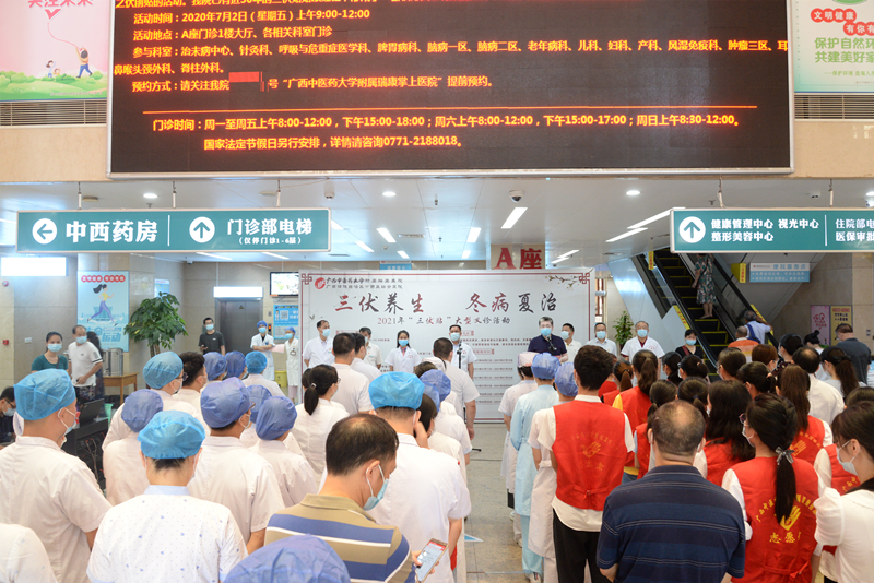 为扎实开展好党史学习教育,把“我为群众办实事”活动落到实处。7月2日上午,我院开展“三伏养生,冬病夏治”大型三伏贴义诊活动,在最炎热的夏日,向广大市民提供免费贴敷“三伏贴”之伏前贴的服务。早上八点半,医院党委书记高宏君,院长唐友明,党委副书记、副院长陈日兰,副院长、总会计师庞刚,副院长韦思尊,纪委书记黄建民,副院长陈锋、宋策和各科室代表在A座一楼大厅,拉开三伏贴活动的帷幕。活动启动仪式由高宏君主持。