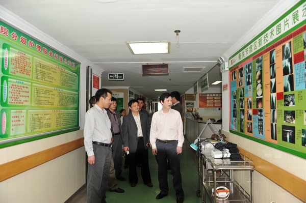 交流会后王显亚一行在桂雄斌副院长的陪同下先后到射波刀治疗中心、消化内科、骨科、重症医学科等科室进行参观。
