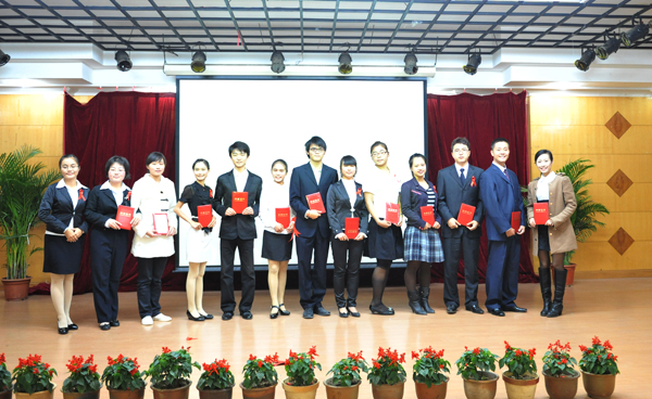 最后来自广西民族大学9号选手熊淑娴荣获一等奖,到场领导、嘉宾为获奖选手颁发证书。