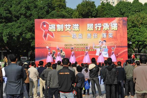 今天是第23个世界艾滋病日,主题为“普遍可及和人权”,强调实现艾滋病预防、治疗、关怀和支持的普遍可及,是保护人权的当务之急。为了让广大人民群众了解什么是艾滋病、怎样防治艾滋病等知识,广西中医学院附属瑞康医院关爱中心、广西中医(中西医结合)艾滋病研究中心举办了丰富多彩、形式多样的活动,寓教于乐,深入高校、公众活动场所、人流密集场所等地方宣传艾滋病知识,收到了良好的效果。