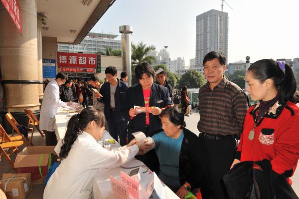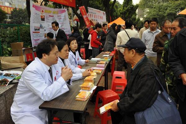 12月1日上午,一向热闹的朝阳广场因为有瑞康医院举办的“防治艾滋病,中医在行动”一系列活动而显得更加热闹非凡。宣传艾滋病知识的展板前,站满了前来了解情况的群众;接受大家咨询的专家,被大伙团团的围了起来;发放资料的工作人员,手中的资料被大家几乎都被抢空了……