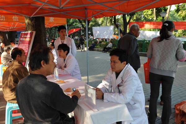 广西中医(中西医结合)艾滋病研究中心工作人员提供咨询服务