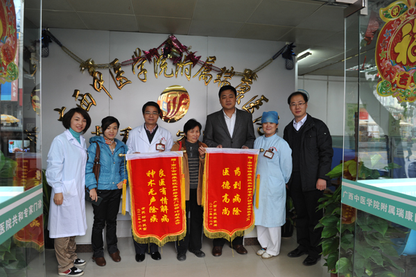 2010年12月20日,63岁的退休老人赵莲华和黄女士前往广西中医学院附属瑞康医院共和专家门诊部(以下简称共和专家门诊部)给叶利斌教授和医务人员们送去锦旗。黄女士说:“谢谢《南国健报》,谢谢瑞康医院的好医生,让我们找到了专家并看好了病”,南宁市三名63岁的退休老人黄民富和冼松娣,赵莲华因为喜欢看《南国健报》,并从中找到了老专家,不约而同前去给医生体检看病,结果例行检查时,医生凭借丰富的经验及时诊断隐患的病情并给予有效的治疗。