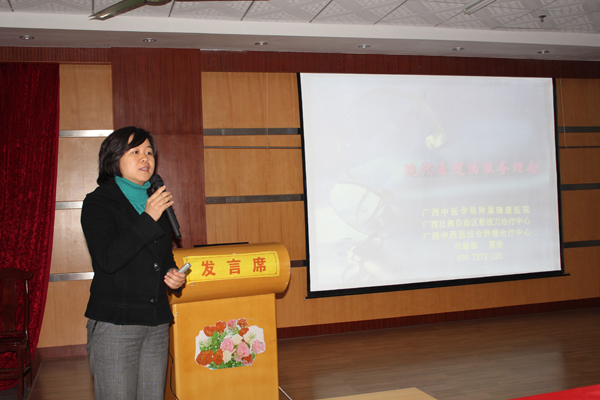 2011年3月25日-26日,我院桂雄斌副院长带领市场部、医疗服务部、广西中西医结合肿瘤治疗中心、广西壮族自治区射波刀治疗中心到平南和贵港开展学术研讨会,推广我院射波刀的先进技术。