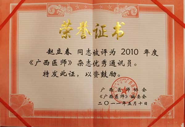 信息宣传科赵立春科长荣获2011年广西医师杂志优秀通讯员