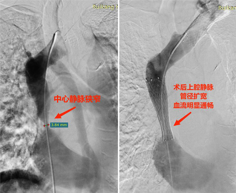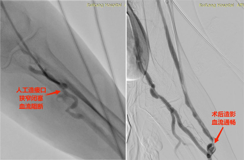 恢复舒阿姨血透导管的正常使用成了当务之急!舒阿姨入住肾内科完善相关检查后,医生发现其右颈内静脉闭塞,中心静脉狭窄,左前臂人工造瘘口闭塞。肾内科向少伟主任、马晓露副主任,胸心血管外科杨柳山主任、范悦副主任等带领团队经过内外科联合会诊制定了治疗方案。方案指出,血透通路不良是因为导管长期留置出现与血管壁粘连、导管尖端纤维鞘形成以及中心静脉狭窄等多种因素导致的,而右颈内静脉闭塞,中心静脉狭窄,左前臂人工造瘘口闭塞这些情况又对血透通路的处理带来了不小的麻烦,针对上述情况可通过介入手术的方式进行解决。