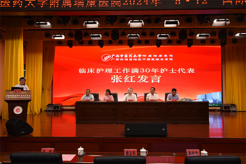 随后,优秀护士代表洪波、中医特色护理先进科室代表梁珊珊、优质护理服务先进科室代表刘秀丽以及临床护理工作满30年护士代表张红分别分享了她们的工作经验和感悟。