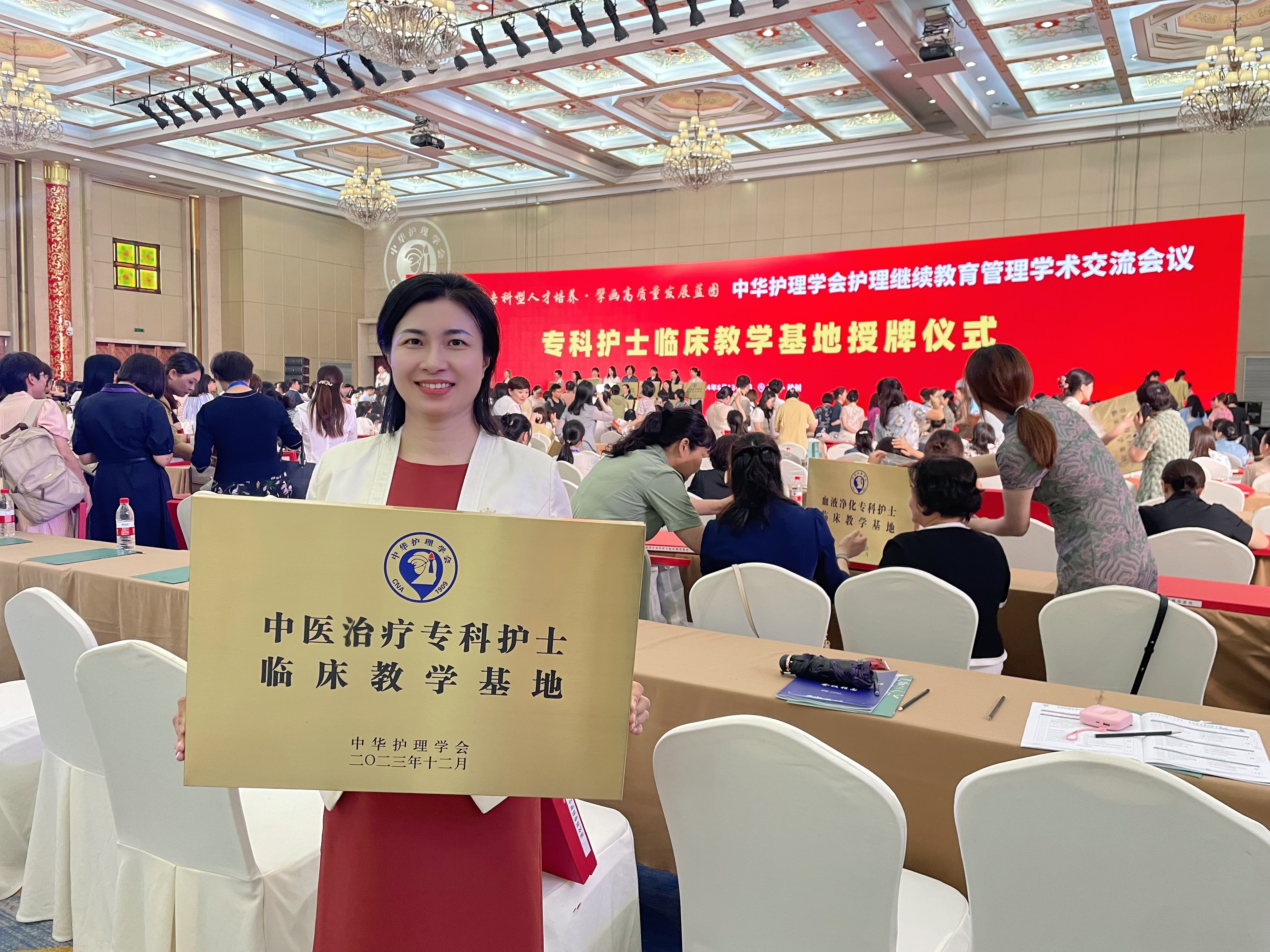 6月14—15日,中华护理学会在浙江杭州举办中华护理学会护理继续教育管理学术交流会议,会上公布了专科护士培训临床教学基地授牌名单,我院正式获评中华护理学会中医治疗专科护士临床教学基地,医院护理部副主任涂惠琼代表医院上台接受牌匾。