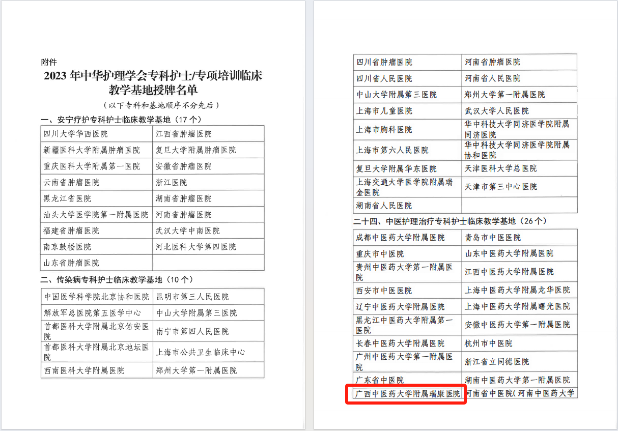 我院自2020年获批中华护理学会中医治疗专科护士京外临床教学建设基地以来,严格按照中华护理学会相关标准和要求,精心组织临床实践教学,至今已有来自省内外15家医疗卫生机构的23名专科护士在我院完成临床实践,顺利结业。此次通过中华护理学会复评,正式获批中华护理学会中医治疗专科护士临床教学基地,标志着医院在中医治疗专科护士培训能力方面再上新台阶。我院将以此为契机,严格贯彻落实中华护理学会专科护士培训管理规定,不断规范基地管理,完善制度体系建设,加强师资队伍培养,创新临床带教模式,为培养更多优秀的中医专科护士贡献力量,推动中医护理事业高质量发展。