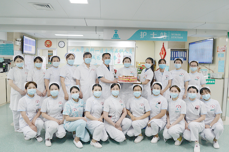 为庆祝第110个国际护士节,5月12日上午,医院党委书记高宏君,院长唐友明,党委副书记、副院长陈日兰,副院长韦思尊、陈锋、宋策带领护理部及相关职能科室负责人亲切看望慰问了工作在一线的护理工作者,为天使们送上节日蛋糕,并与大家亲切握手,合影留念。