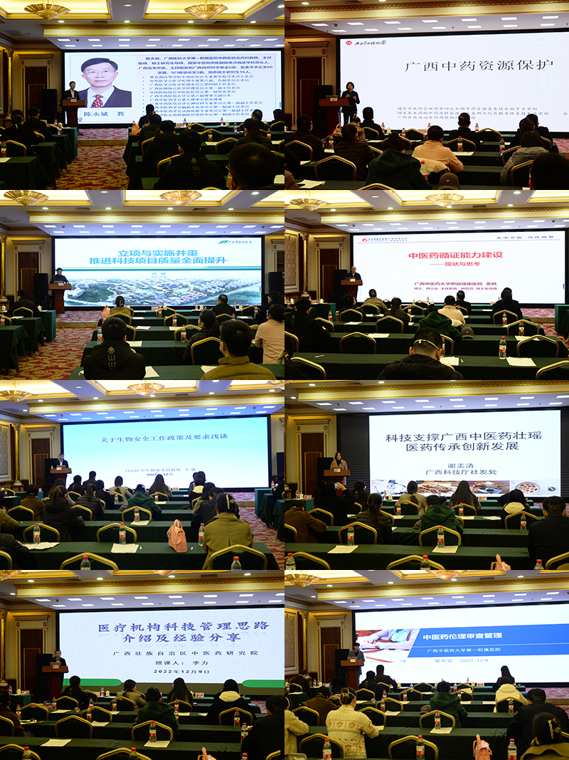 本次培训班,自治区卫健委科教处长王盛,广西中医药大学科技处处长肖健,自治区科技厅社会发展副处长谢美清,瑞康医院科技科主任姜枫,以及来自广西药用植物园、广西中医药研究院、广西医科大学第一附属医院、广西中医药大学第一附属医院等单位的专家先后带来学术分享,内容涵盖国家及自治区中医药科技政策解读、中医药科研思路、项目管理、伦理审查、生物安全管理、中药制剂、中药资源、中医循证能力建设、中医药重点学科建设等相关工作进展和经验。
