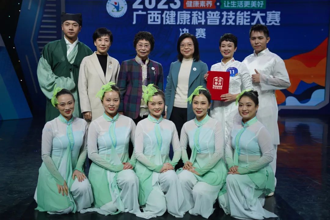 12月21日下午,从2023年广西健康科普技能大赛决赛上传来激动人心的好消息,我院选送作品《穿越千年话药膳》在蒋娴、吴江成、罗晴、李安琪、周艳西、吴晨羽、蔡丽、杨开宇等8名队员的精彩演绎下,以承载着中华民族数千年的饮食文化和医学智慧的中医药膳养生知识配合美轮美奂的表演赢得了现场专家评委、观众的一致好评,以决赛97分排名第一的好成绩荣膺本届大赛一等奖。此次比赛由宣传部牵头组织,是我院自《中华脊梁》获得第一届广西健康科普技能大赛一等奖后再次拿到该项比赛的团体一等奖。