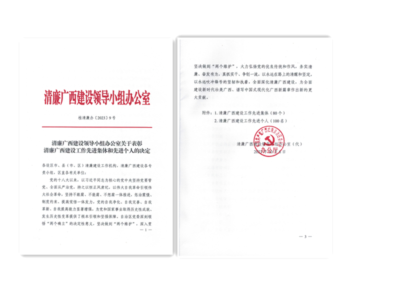 近日,清廉广西建设领导小组办公室印发了关于表彰清廉广西建设工作先进集体和先进个人的决定,我院医务部副主任陆彩云榜上有名,获“清廉广西建设工作先进个人”荣誉称号。