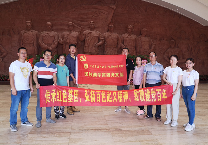 为庆祝中国共产党成立100周年,开展好党史学习教育,从党的百年伟大奋斗历程中汲取继续前进的智慧和力量,激发党员干部奋进新时代的昂扬斗志。近日,我院医技药学第四党支部组织支部党员前往百色革命老区,开展“传承红色基因 弘扬百色起义精神”庆祝建党100周年主题党日活动。