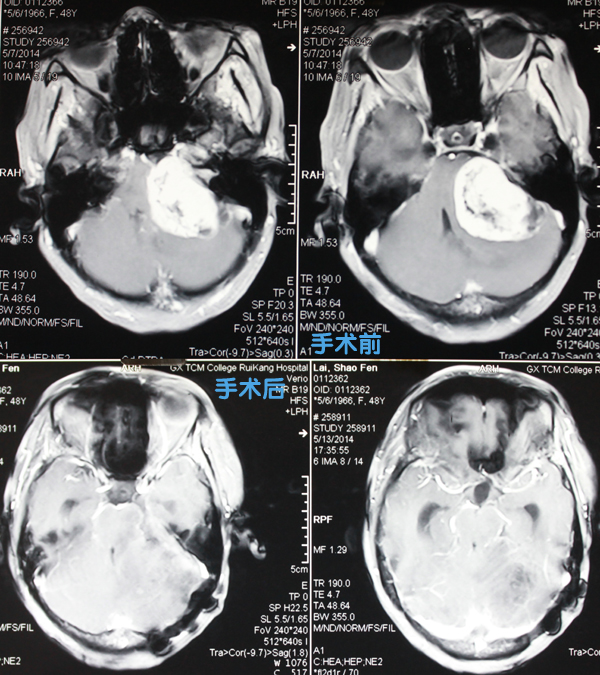 在广西能够行此手术的医院屈指可数,此手术的全切代表我院的神经外科水平达到区内甚至国内先进水平,代表着我院神经外科有着国内先进的显微器械、一支精湛的手术团队。