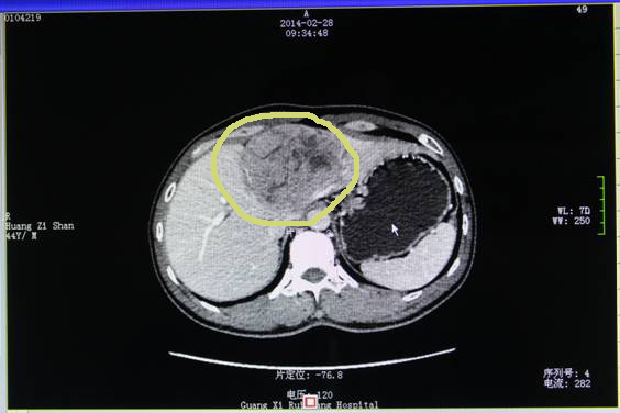 黄先生今年44岁,家住南宁市坛洛镇,2014年2月因上腹部疼痛不适到坛洛镇第二卫生院就诊,B超检查发现肝脏肿块,医生告诉他可能是肝癌。